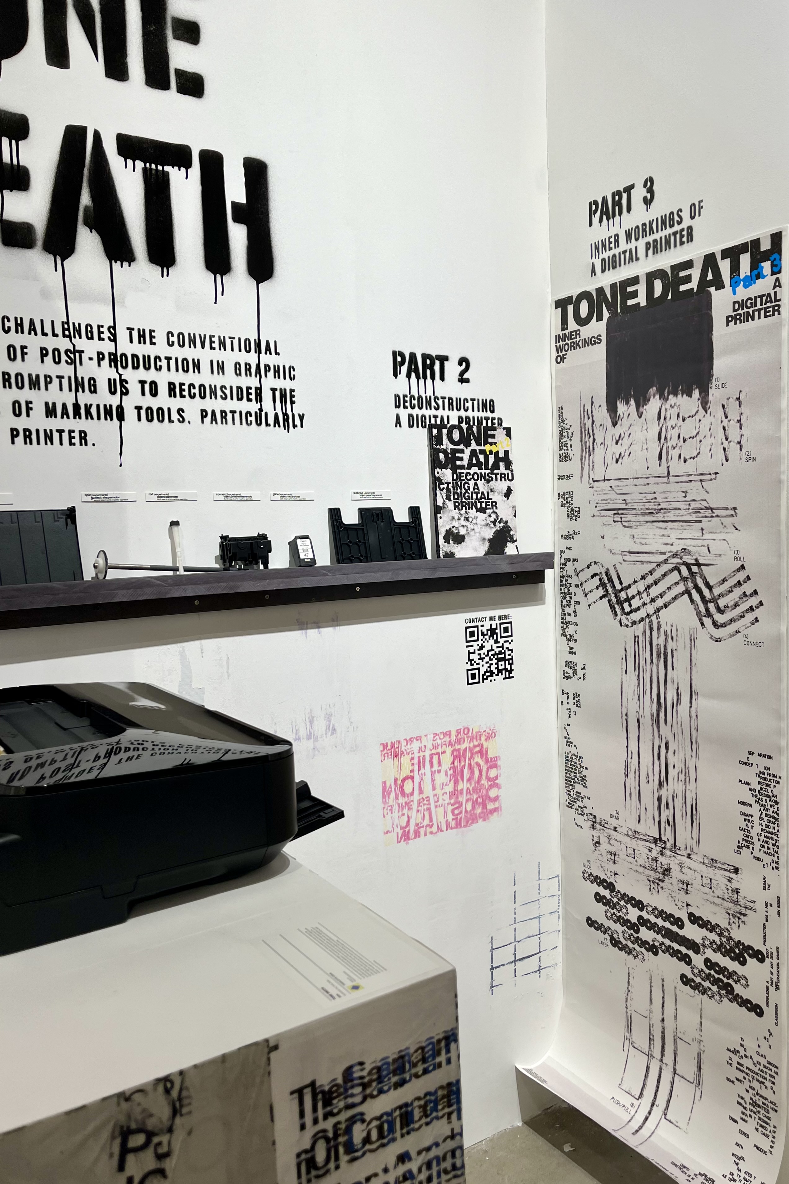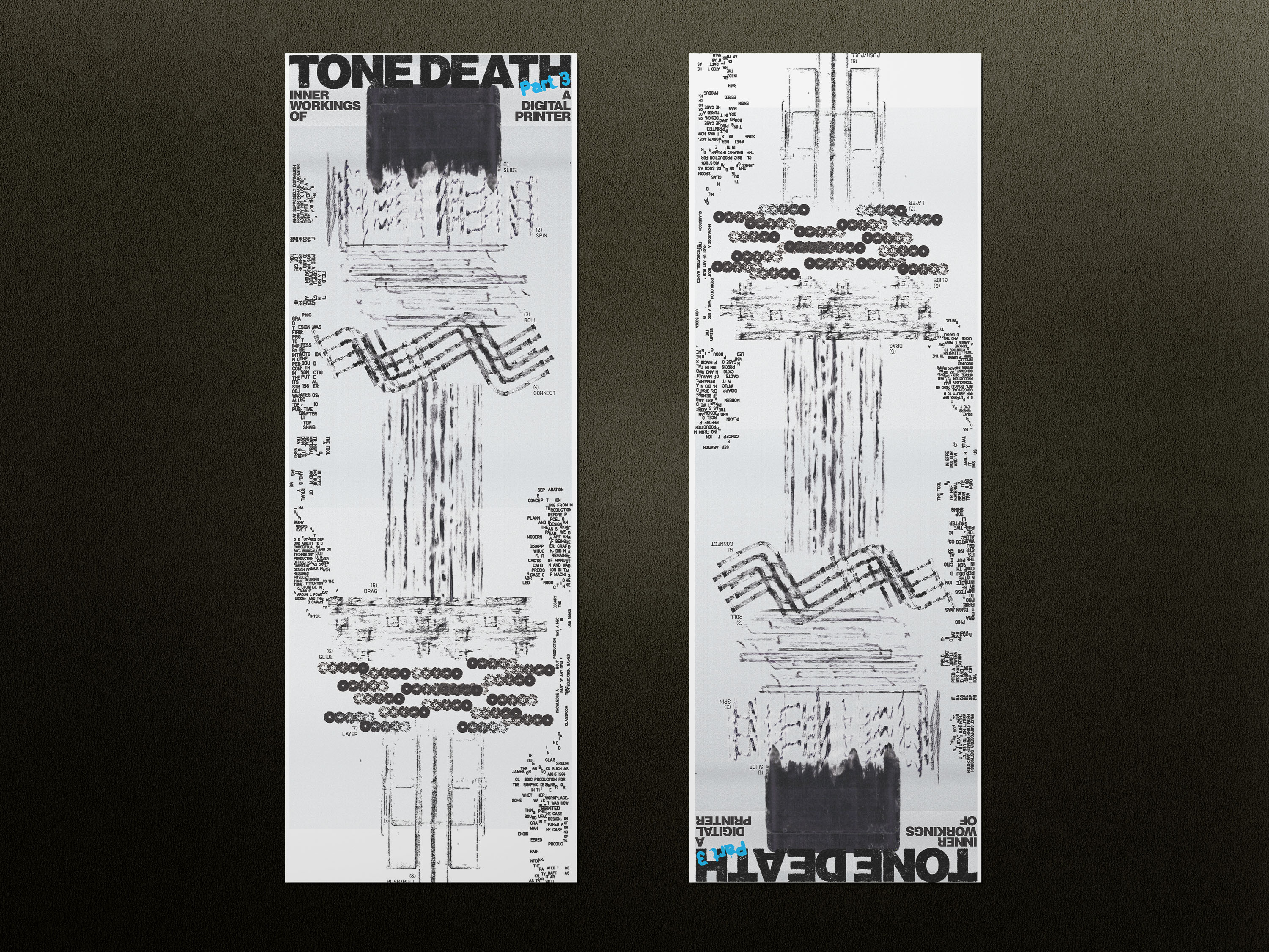 Tone Death challenges the conventional boundaries of post-production in graphic design by prompting us to reconsider the overlooked intricacies of our marking tools, particularly the digital printer.