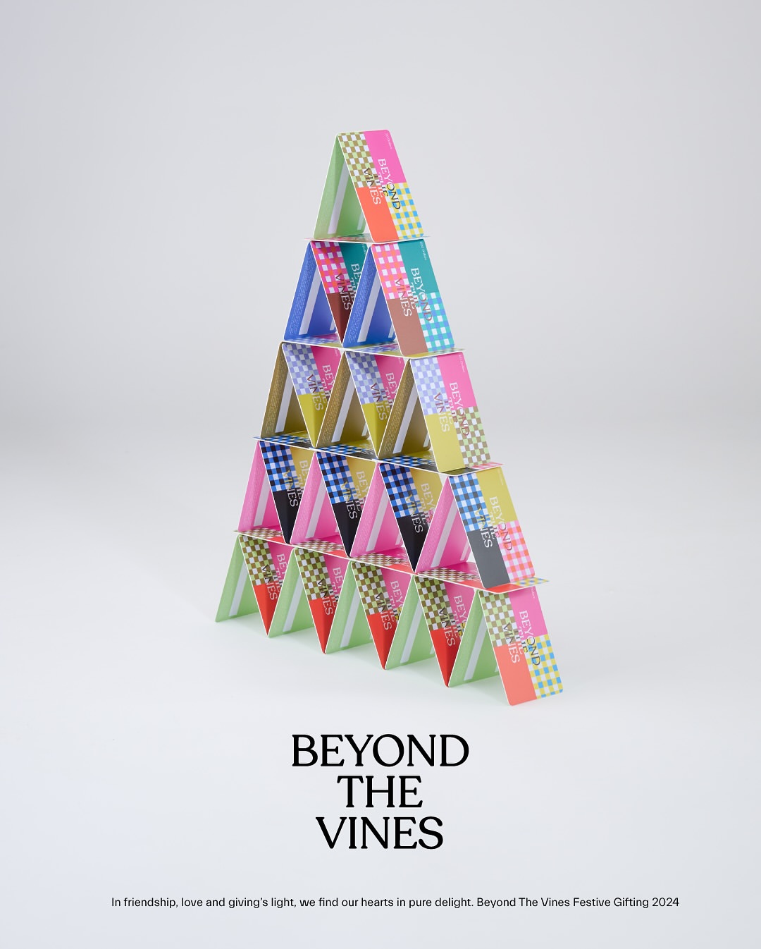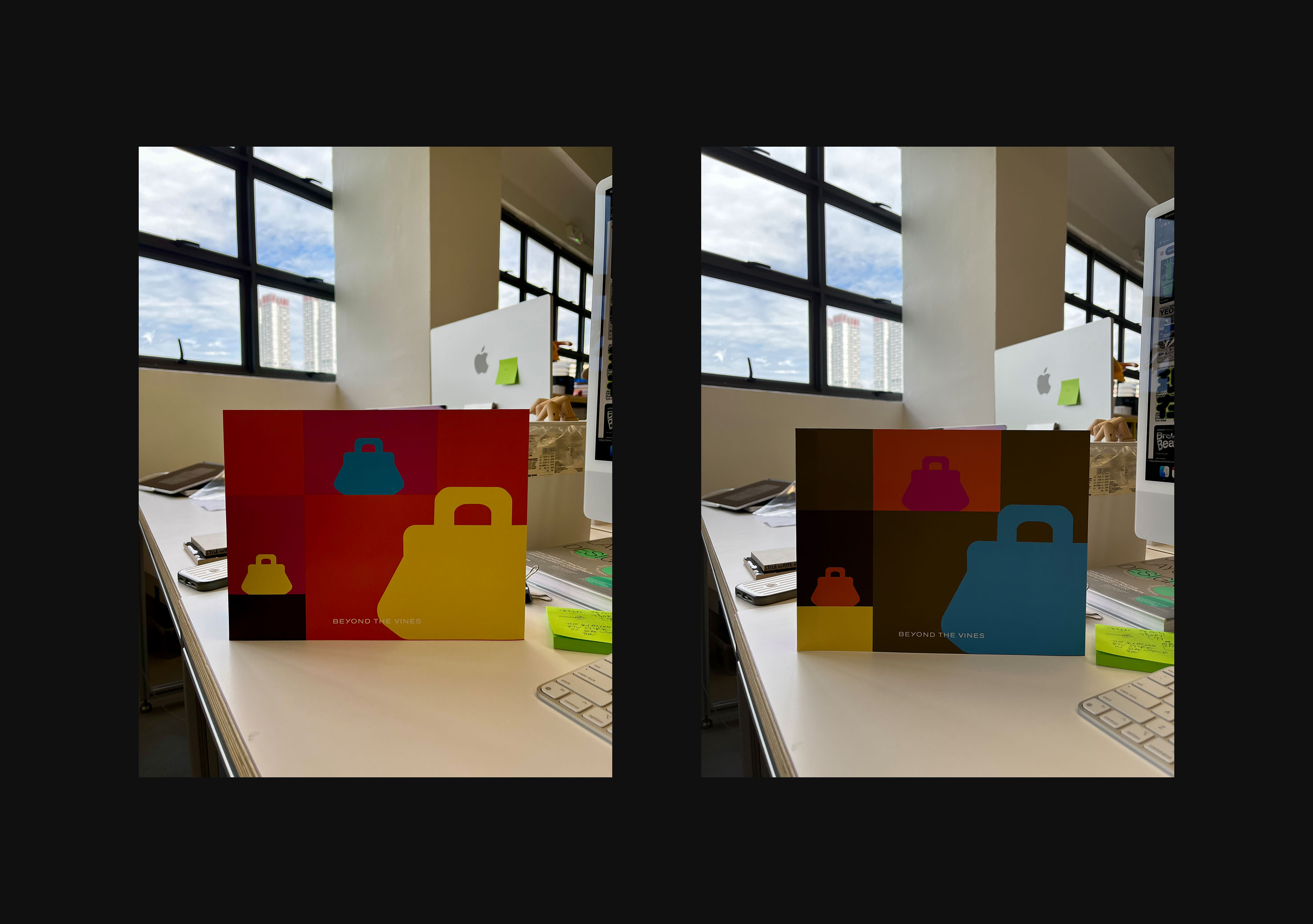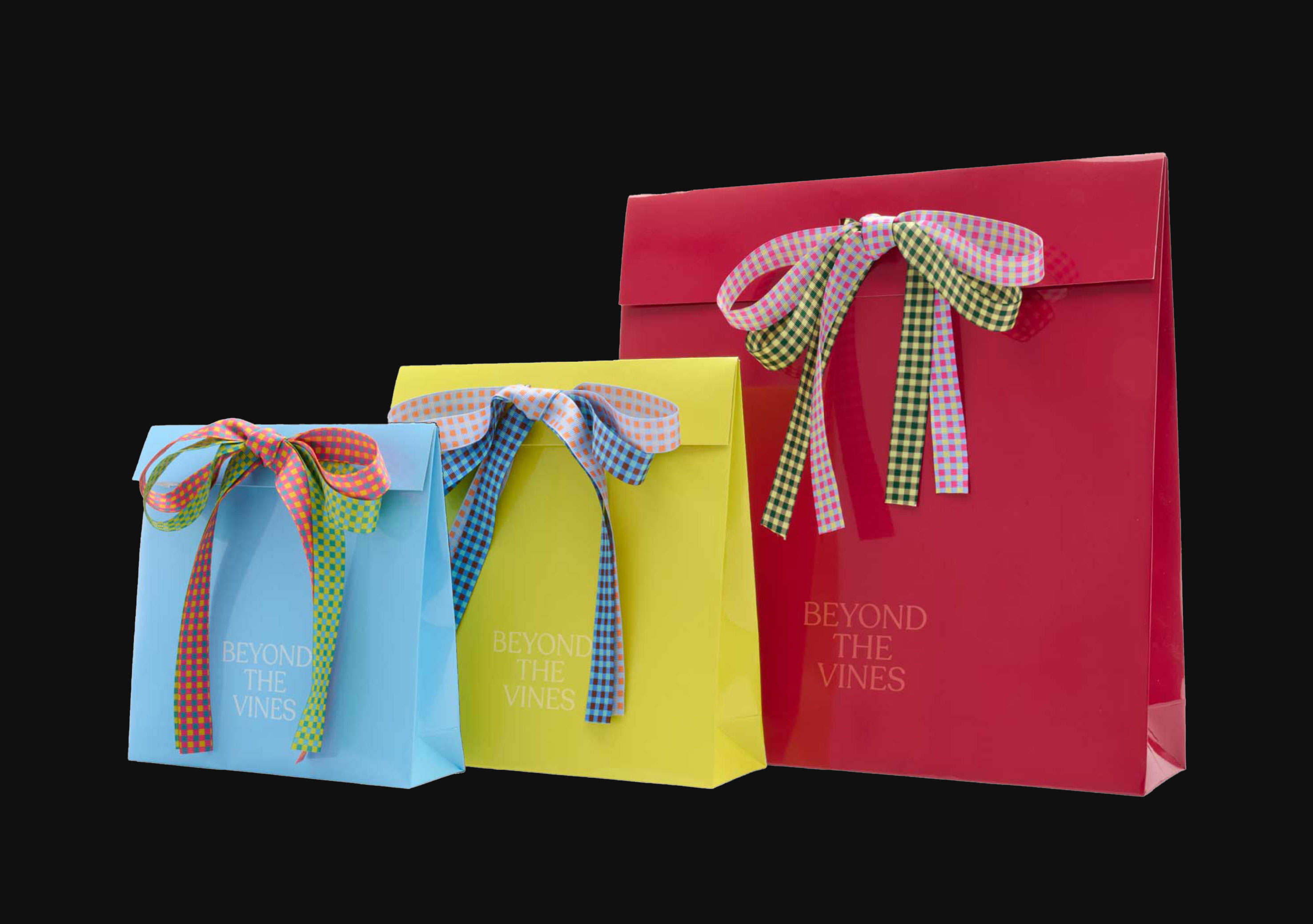 Campaign graphics for seasonal bags applied in stores and marketing collaterals — delivery cards and packaging sleeve.