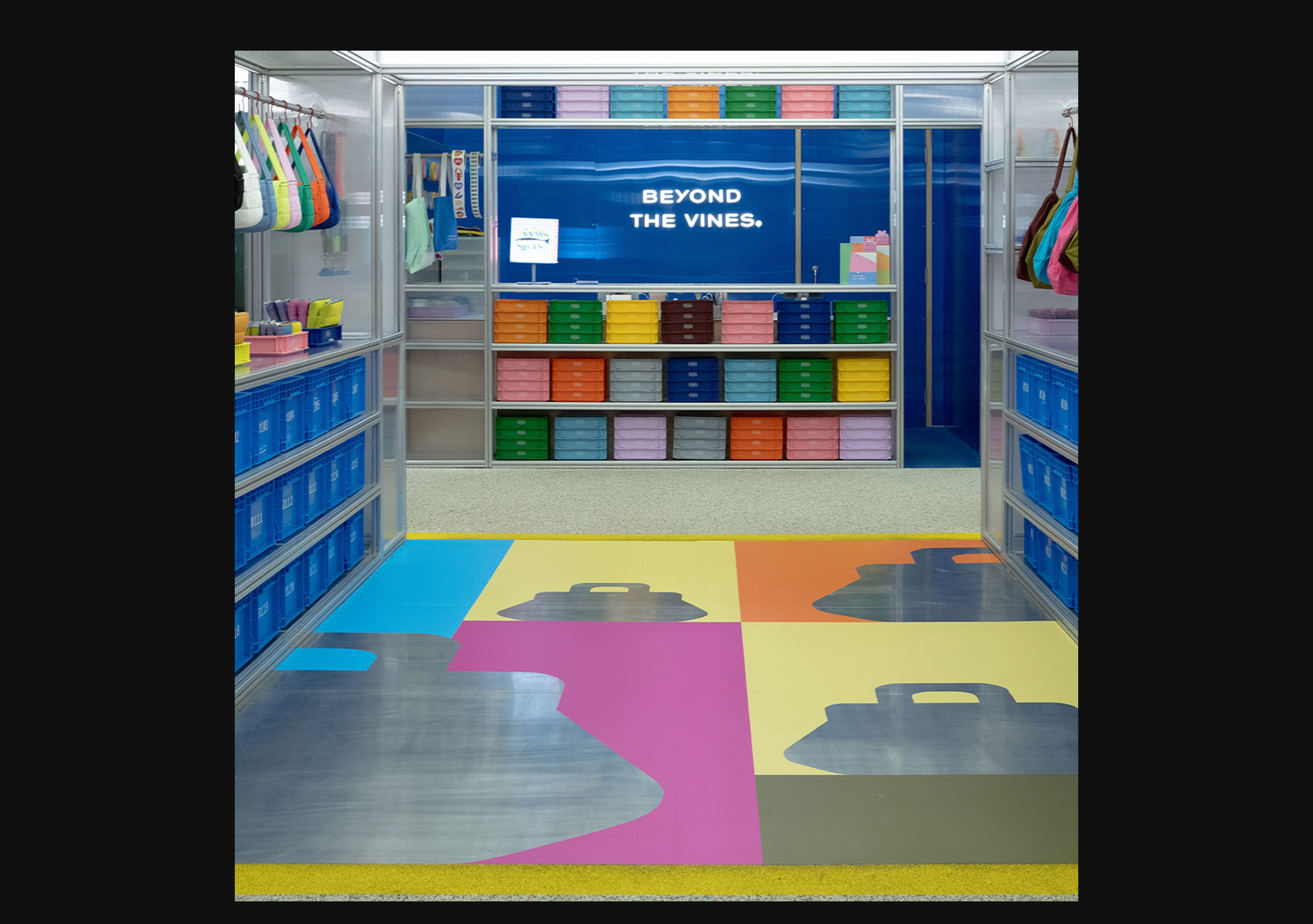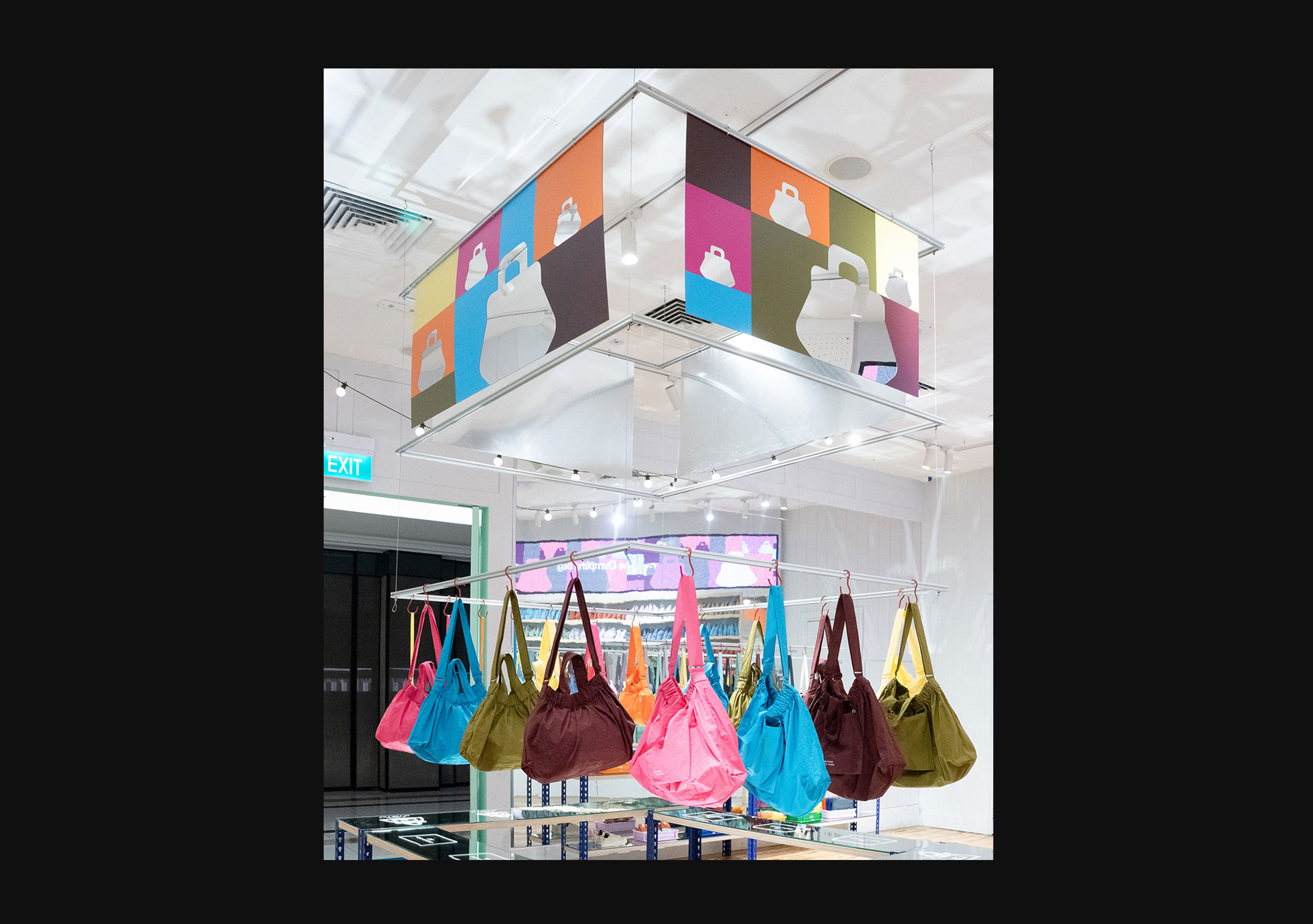Bag infographic wall in stores.